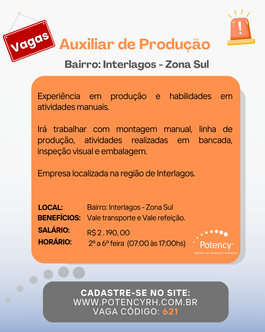 Auxiliar de Produção - Interlagos - Zona Sul